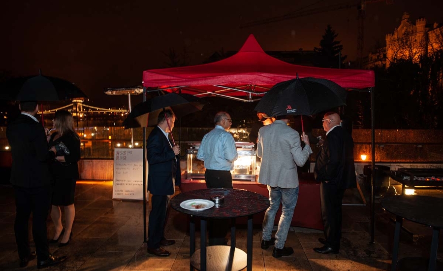 Maciej Galant the Managing Director at BMW Group Hungary, Jonathan Pace the General Manager at Corinthia Hotel Budapest, Duncan Graham the Chairman of British Chamber of Commerce in Hungary, and Kam Jandu the Chief Commercial Officer of Budapest Airport, Hugo Lecanda, General Manager, The Ritz Carlton, Budapest, Manuela Brode, General Manager Hilton Garden Inn Budapest City Center, Andrea Butkovics, CEO and co-owner of Colling Accounting and Controlling Ltd., Tibor Jancsó, Managing Director, AGS Pro, Mo Ortiz, Owner of Arriba Taqueria and Iguana, Michele Orzan from EU Cham, and Károly Bosznai Sales and Sponsorship Director, Hungexpo.