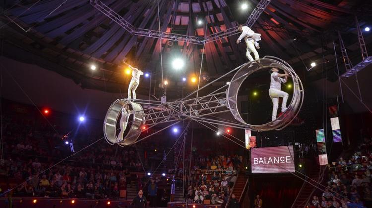 If we have not experienced the importance of blind trust in each other the Columbian performance will ennoble the feeling into a palpable concept. In their stunt this time not only two but four artists will risk their lives while rolling the double wheel: two of them will balance the wheel rolling on the stretched rope inside the wheel and two on the top of it. In this act not only the contact of the bodies but also the connection by the object becomes important: every moment of "how" and "when" will be determining. The troupe shows what balance actually means by tempting the impossible, i.e. to be in balance with each other, with the world and themselves.