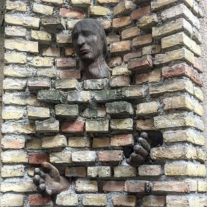 Tucked away in the courtyard of the Roma Civil Rights Foundation, this claustrophobic figure commemorates the great János Bogdán, who campaigned tirelessly for Romani rights and education.