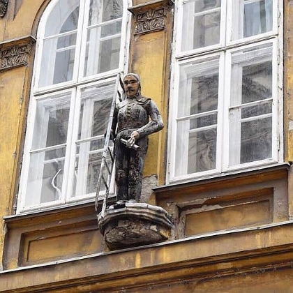 Mihály Devecis was the founder of the family firm, which thrived in the heyday of the “lucky sweep”. Not so in these more modern (and centrally-heated) times, as the house is neglected and the Devicis family long gone. Only this steadfast statue remains of their legacy.