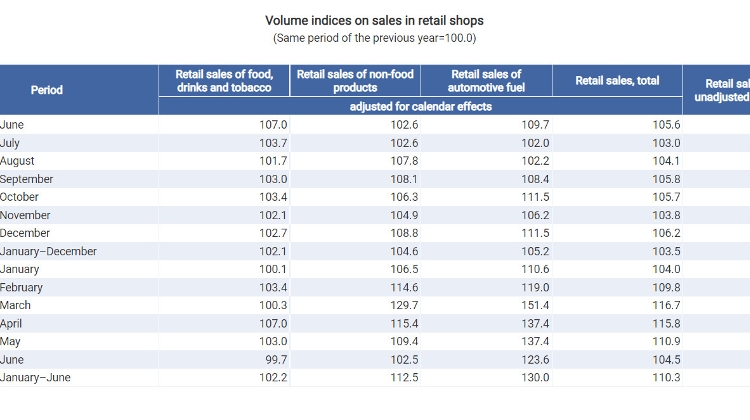 Vehicle fuel sales shot up by 23.6%. Retail sales were worth 1,429 billion forints (EUR 3.6bn), with food sales accounting for 45% of the total.