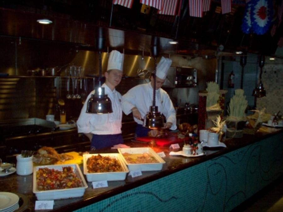 As guests journeyed around the world, they were able to sample the delights of international cuisine including: Foie Gras, oysters and seafood from Europe; Chicken Tikka Masala and lamb Biriani from the Indian Subcontinent; Pad Thai and Red duck curry from the Far Eastern Rickshaw Restaurant; Sushi & sashimi from our Japanese Sushi Bar; Seafood Gumbo, Lobster Tacos and BBQ ribs from America and a range of desserts from all over the world.