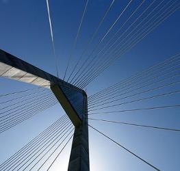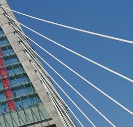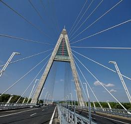 The Megyeri Bridge, previously known as the Northern M0 Danube bridge, is a new cable-stayed bridge that spans the River Danube between Buda and Pest, respectively the west and east sides of Budapest, the capital of Hungary.