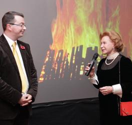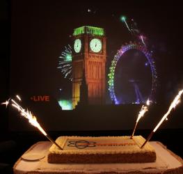 Party supporter JamFilm arranged a giant screen with a blazing bonfire film, raising smiles and a round of applause, all of which warmed the room just as a real bonfire would warm up any Guy Fawkes night.