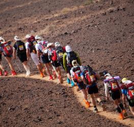 These press photos show the type of conditions involved in this six-day ultramarathon, in which competitors carry all personal belongings and food - for the entire event - on their back.