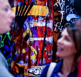 His photos display Street Art from an artist’s viewpoint but also place it in its urban context. So each photograph in the exhibition is accompanied by a picture and a text that describe its origin and its environment.