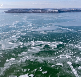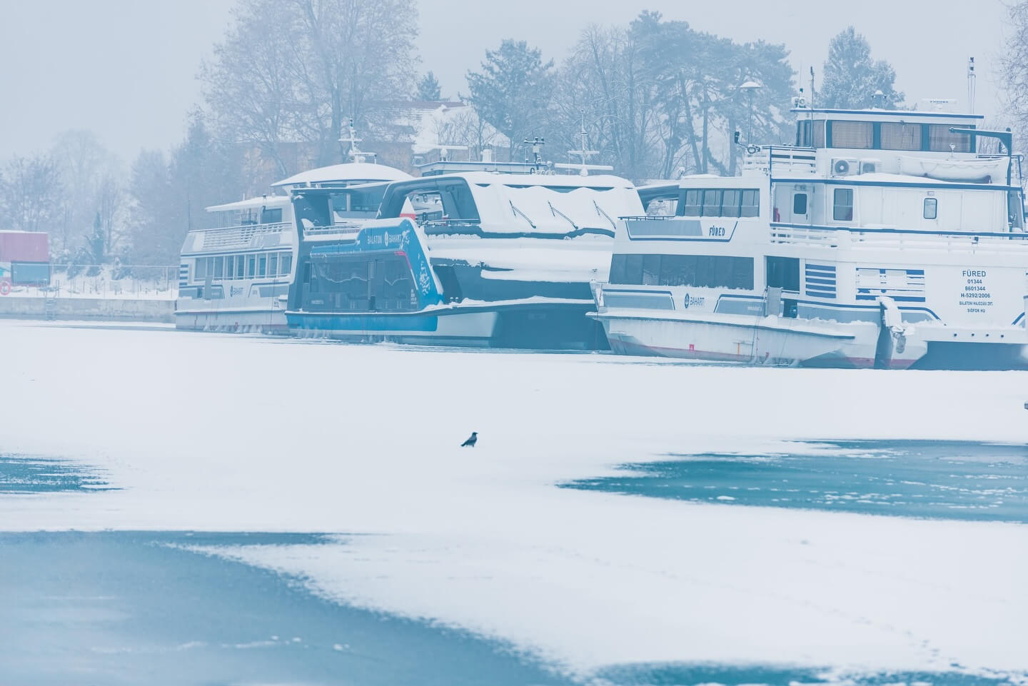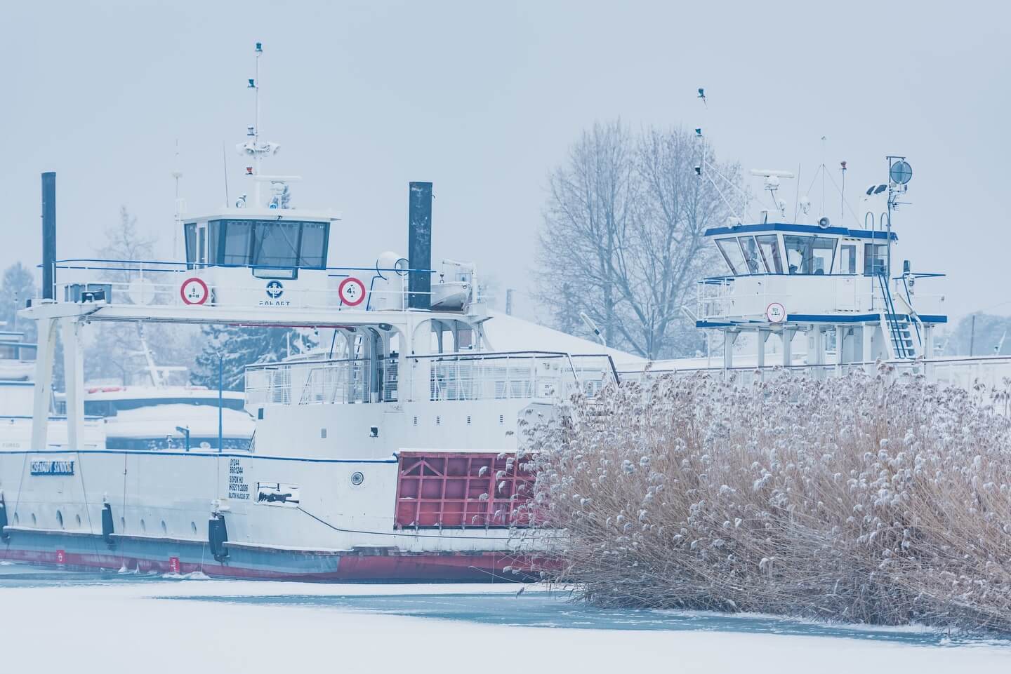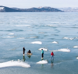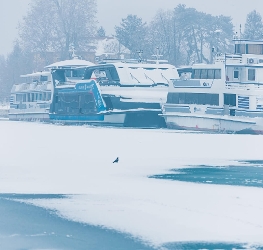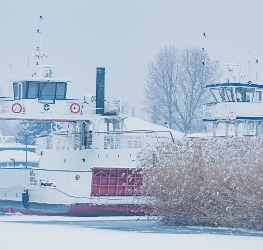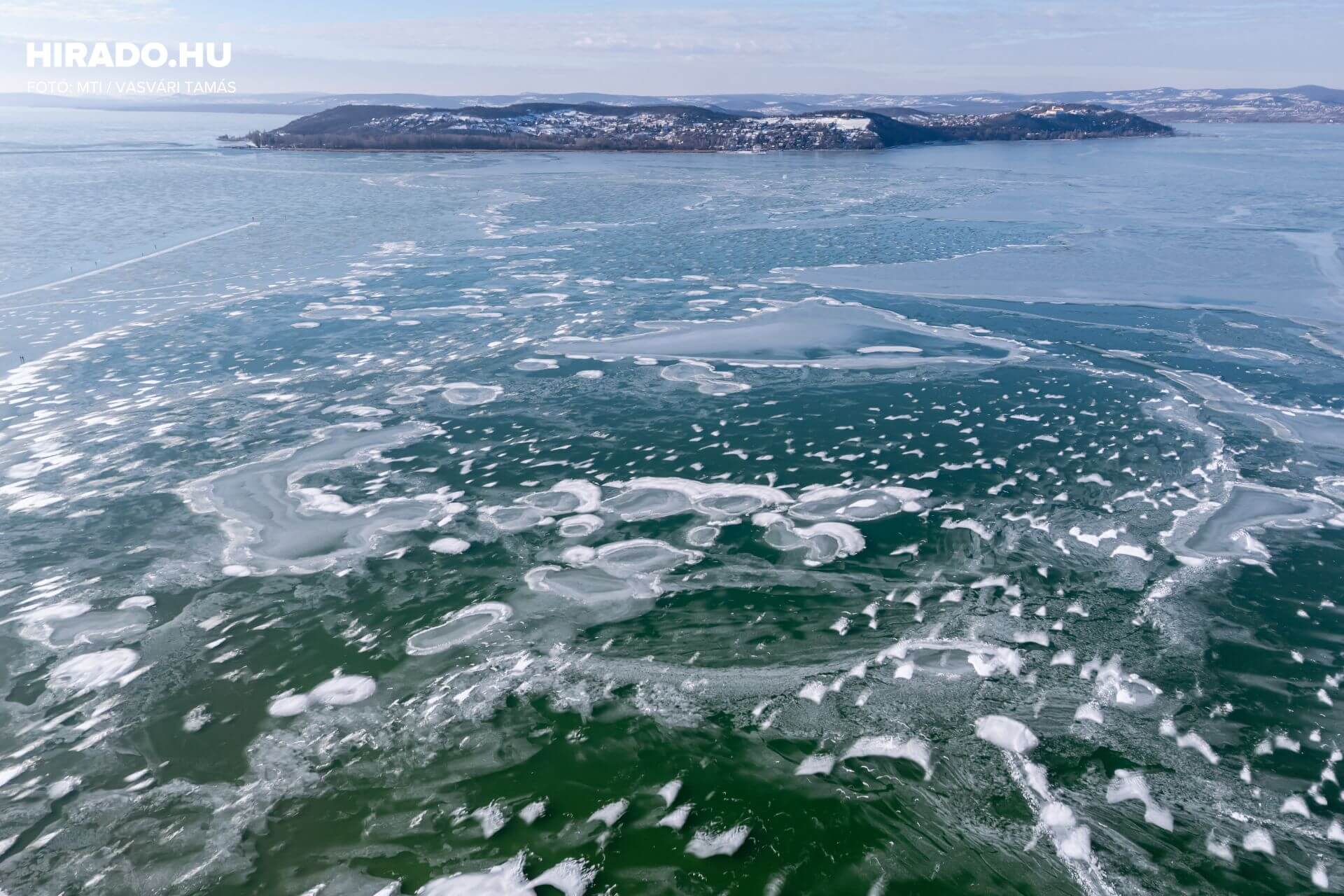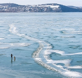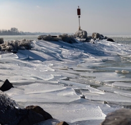 Ferry services between Szántód and Tihany continued operating as ice floes did not yet block navigation.
