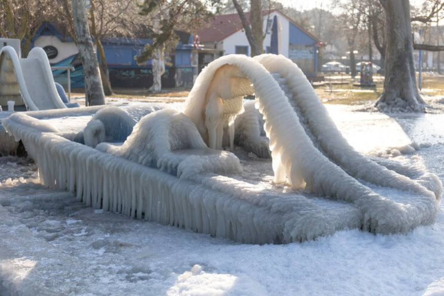 Rare Ice Spectacle at Frozen Balaton in Hungary